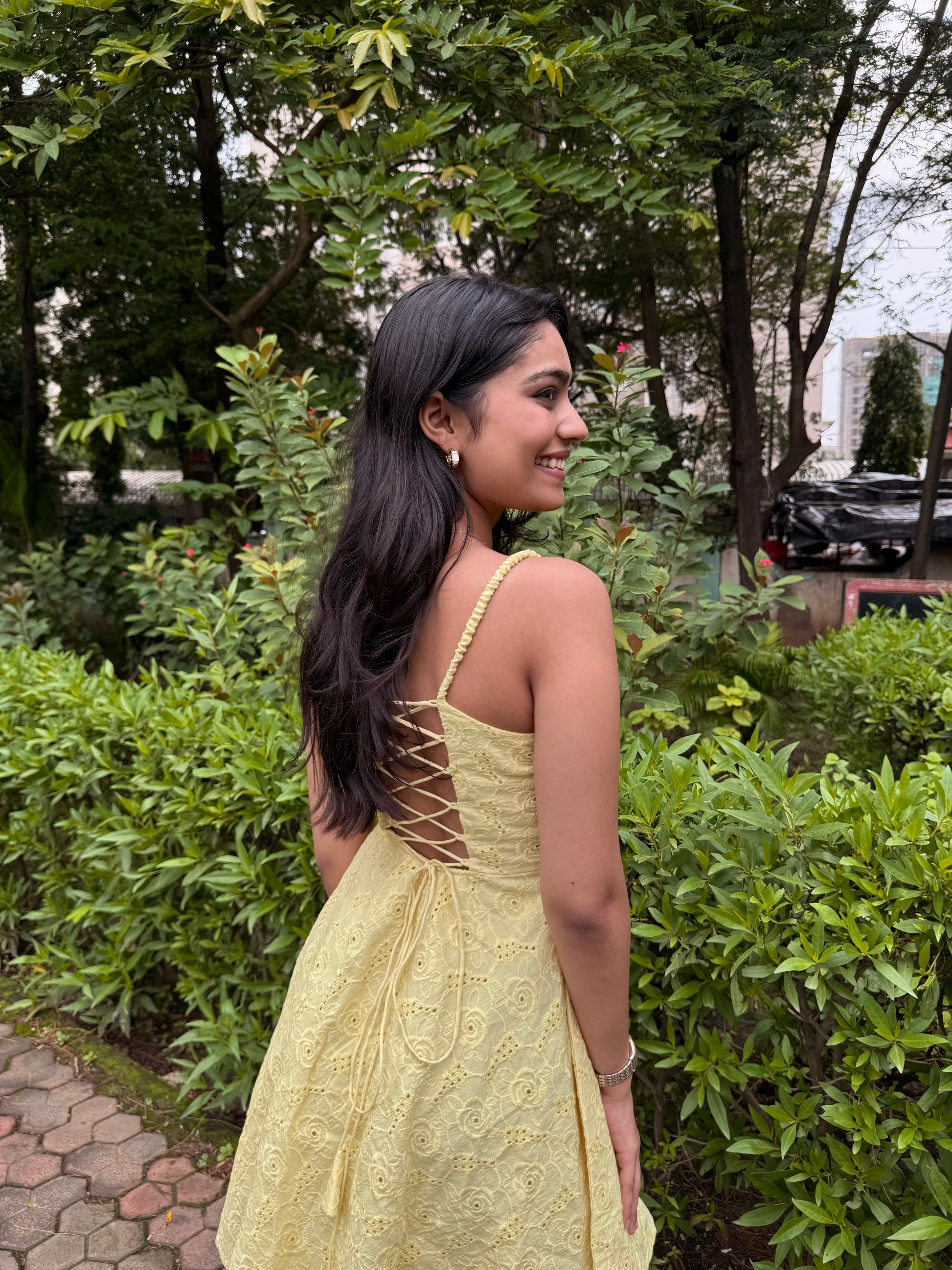This one’s crafted in soft cotton schiffli and stitched just for you. With an adjustable corset back and a flowy fit, it’s light, breathable, and perfect for slow summer days. Made to order, made to love.