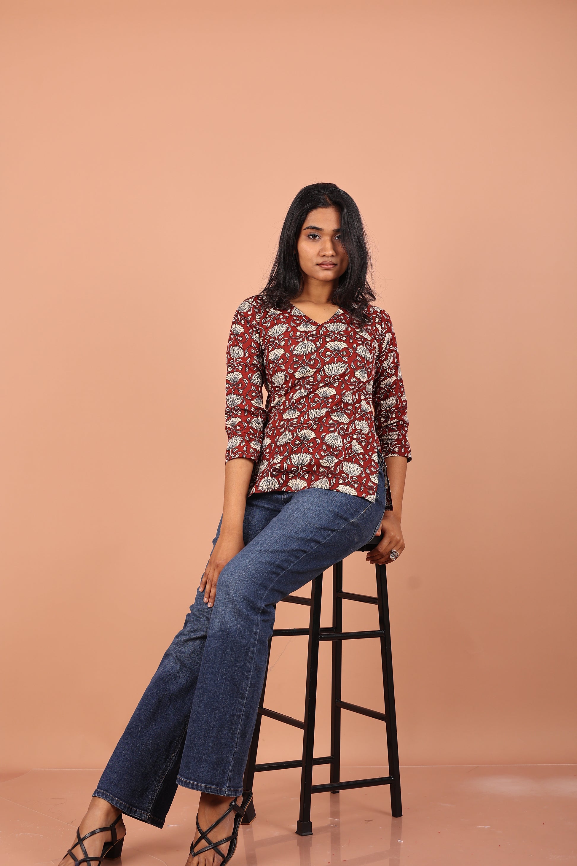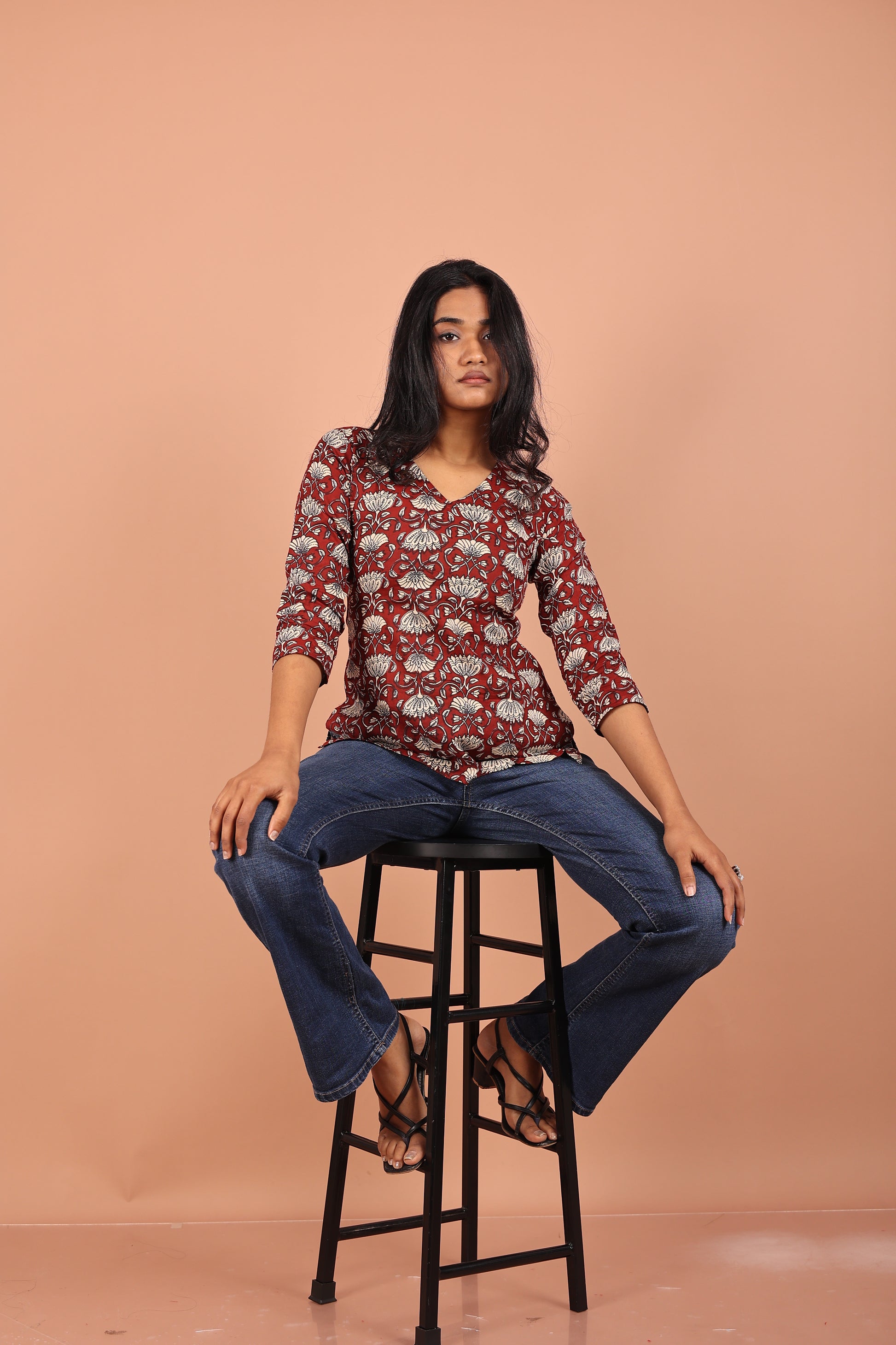 This pure cotton, straight-fit short kurta features a beautiful print and 3/4th sleeves. Comfortable, breathable, and perfect for both casual and semi-formal wear. Ideal for pairing with jeans, leggings, or skirts.