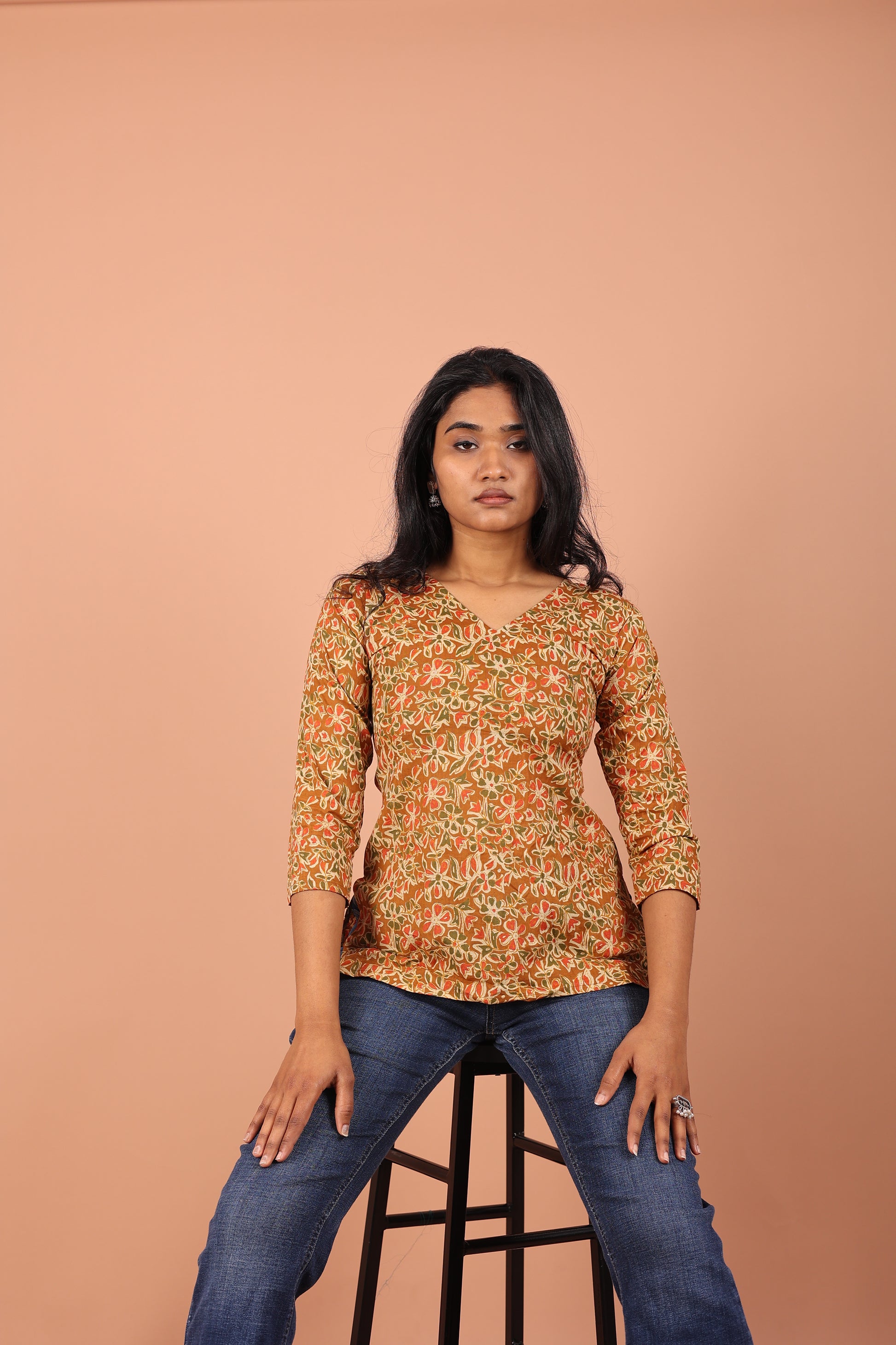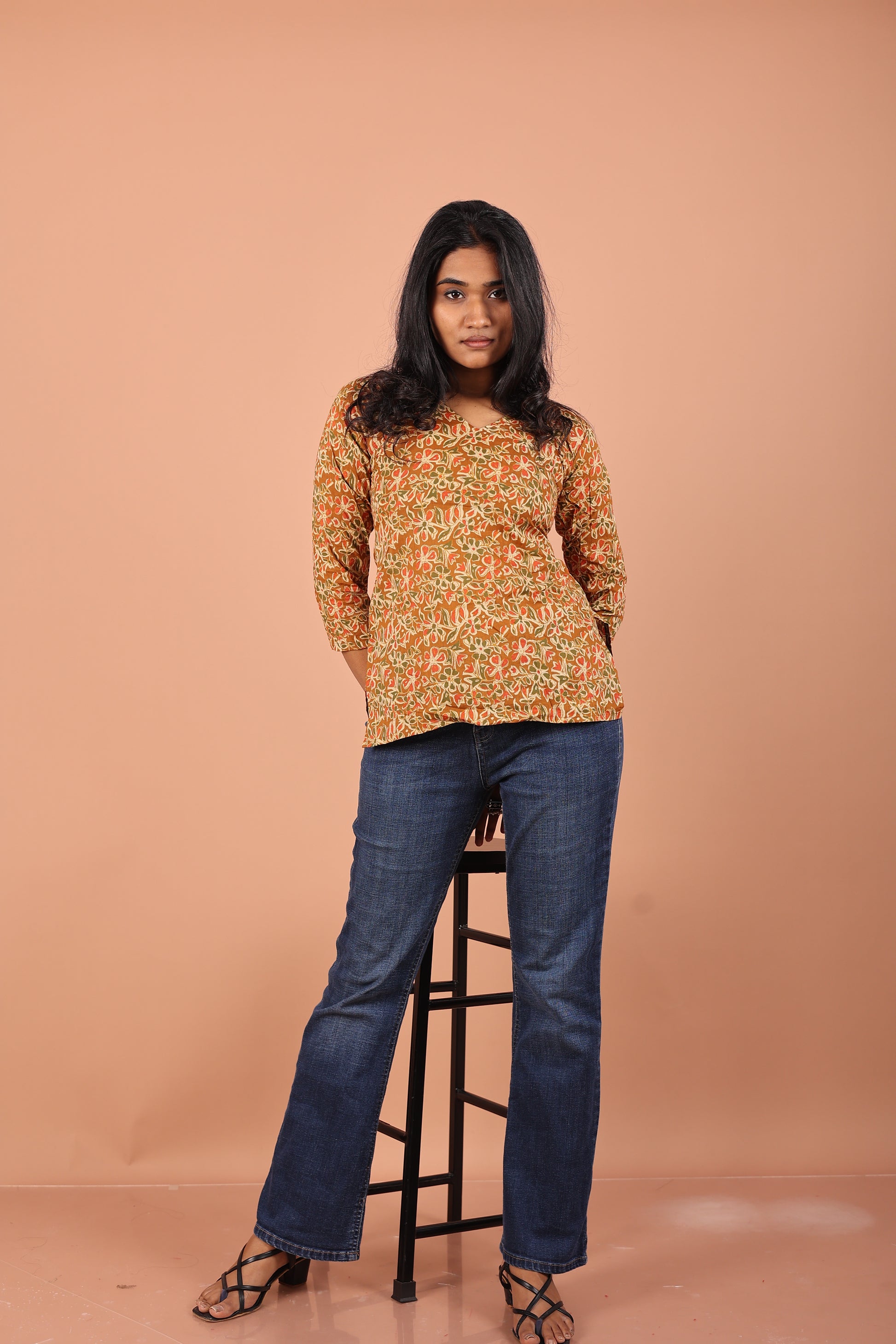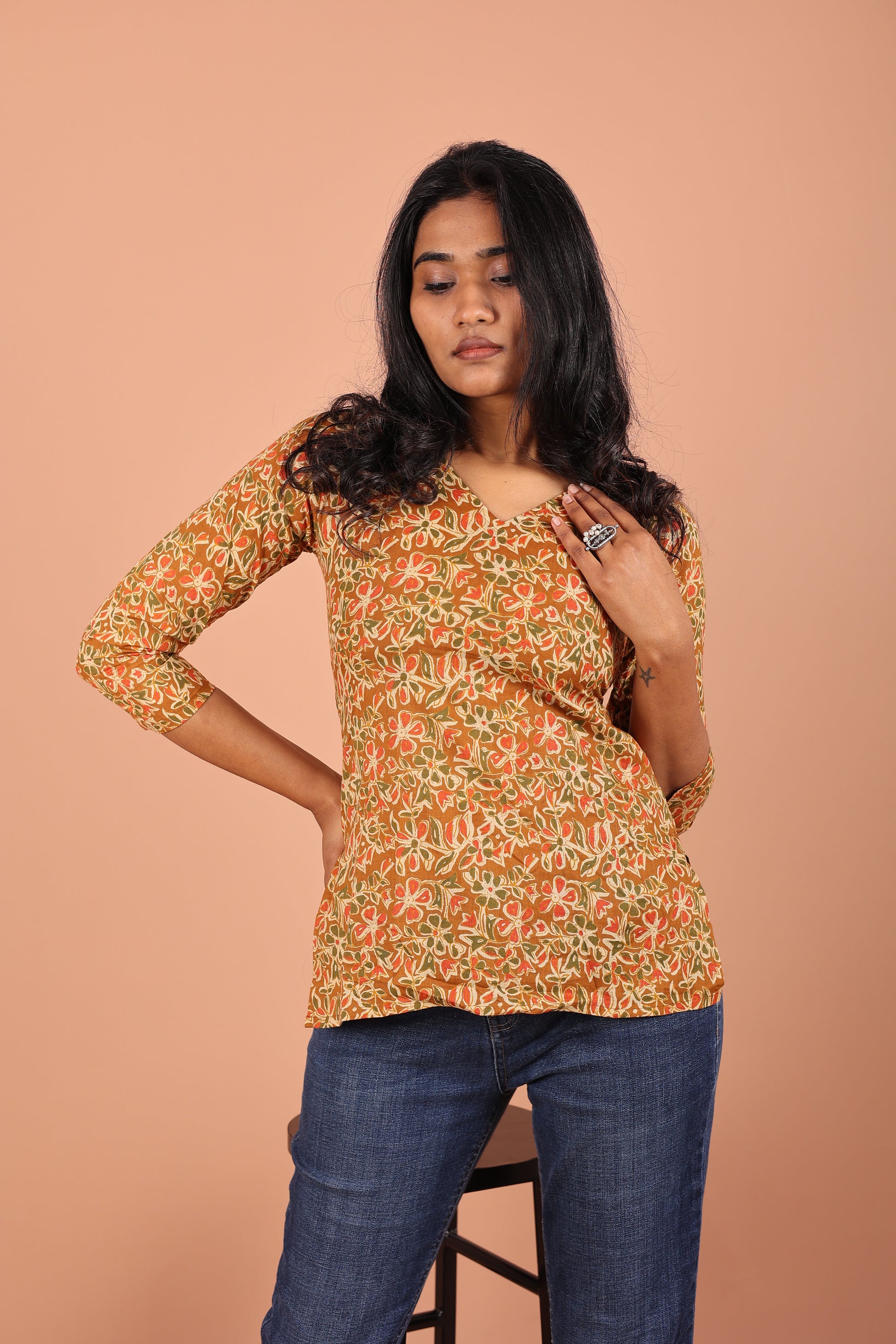 This pure cotton, straight-fit short kurta features a beautiful print and 3/4th sleeves. Comfortable, breathable, and perfect for both casual and semi-formal wear. Ideal for pairing with jeans, leggings, or skirts.